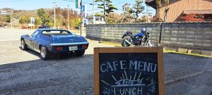 この峠は数日前まで雪で通行困難だったとは思えません。仲間のカフェでバイク談義の時間です。
